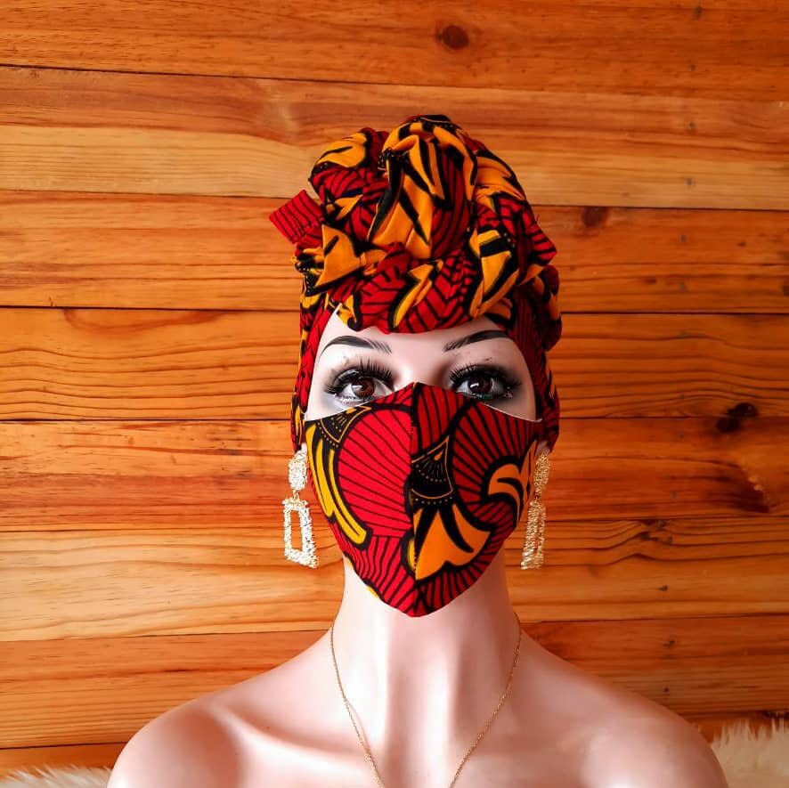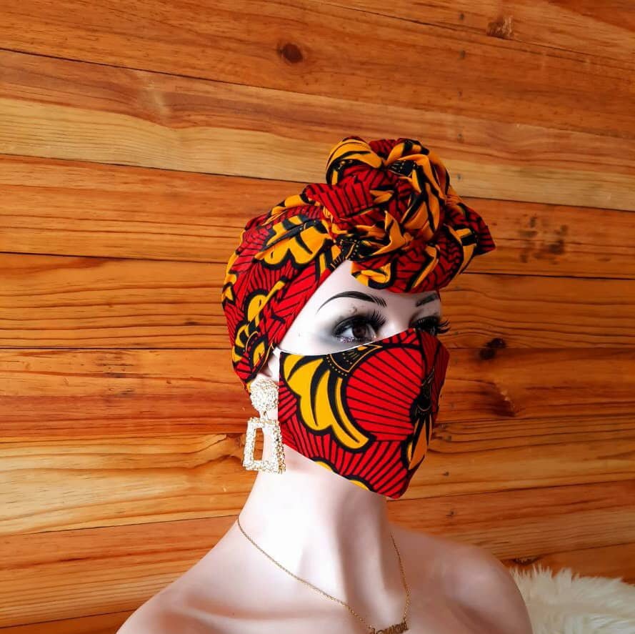 》Matching African print Ankara Nose Mask with Head Wrap.