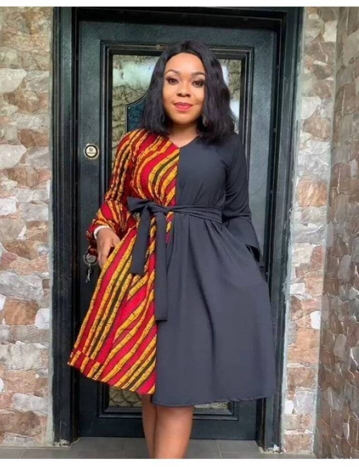 You have in your view a simple but stylish African dress made from the choicest Ankara fabric in a half and half design.